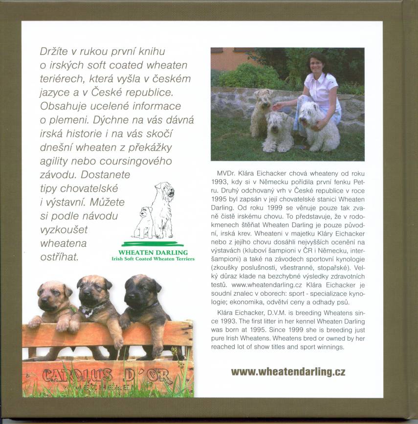 Irish soft coated wheaten je plemeno, které jsme v České republice před několika desítkami let znali jen z obrázků a také plemeno, které si v poslední době získává stále více příznivců. Ten, kdo chce být spokojen se svým psem obecně a s whetenem zvláště a kdo chce aby mu jeho čtyřnohý společník dělal radost, by měl znát celou řadu věcí. Měl by vědět, kde se plemeno ke kterému jeho pes přísluší vzalo, jakou má povahu, jak upravovat jeho srst a jak o něj správně pečovat. Přesně tyto informace obsahuje knížka, kterou právě otevíráte. Určitě stojí za to, ji mít ve své knihovně. Začátečníkům může hodně poradit, zkušenějším lidem leccos objasnit a nám všem přinést to, co dělají i naši wheateni, tedy udělat lidem okolo psů radost.